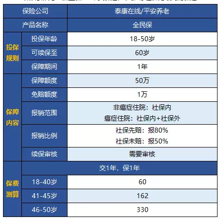 總的來說,全民保有點像閹割版本的百萬醫療險,免賠額是10,000,但保障配額、報銷範圍和比例也較低。