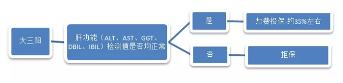 重疾險:加費/拒保。重疾險對大三陽投保,如果肝功能正常,加費的情況比較多。例如哆啦A保重疾險的智能核保結果如下: