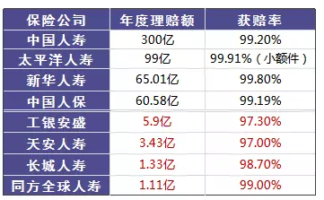 我們來看幾個保險公司發布的理賠率:消費者申請理賠後,保險公司理賠的概率有多少。