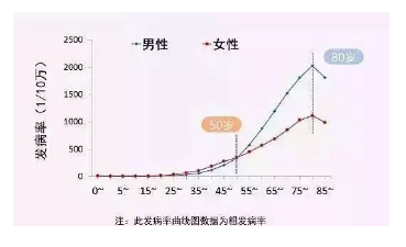 也就是說一個人從30歲開始,患癌的幾率是以幾何速度增長的!經統計: