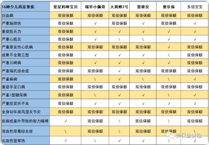 5種罕見少兒疾病,額外外賠200%保額。