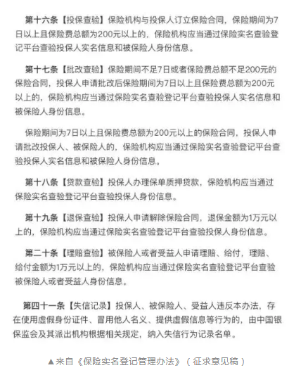今年的6月4號,銀保監會發布了《保險實名登記管理辦法》的征求意見稿。