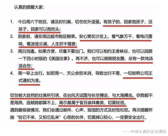 這份“嚴肅認真”的安全通知告訴我們,麵對”山竹“這類災害我們要注意這幾點: