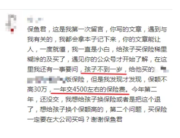 因為,這是給一個小孩子買的保險!小孩子的保費預算已經用了4500元!