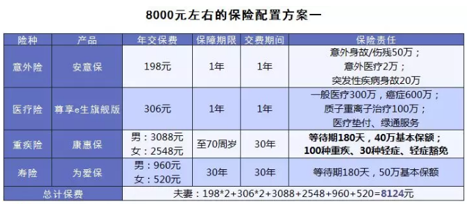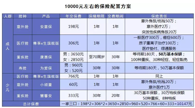 2)8000元左右,我們可以有兩種選擇,一是盡可能做高大人的保額,使保障更全麵;另一種就是在保障了大人的基礎上,將剩下的預算給孩子買保險。