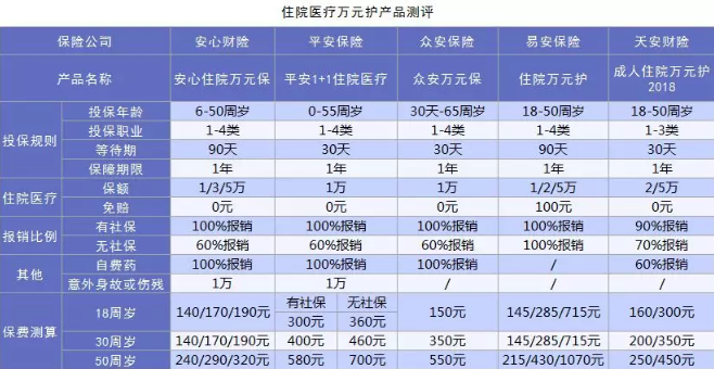 眾安萬元保的投保年齡是5款中最高的,65周歲仍可投保,比較適合中老年人,即使是50周歲後購買價格也不是很貴。
