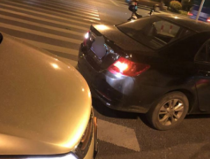 車輛在過路口的時候,司機打算搶個黃燈通過。可是眼瞅著車速已經趕不上了,司機一個急刹,二胖乘坐的滴滴被追尾了……
