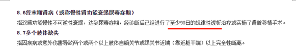 3、 達到約定狀態賠付:腦中風後遺症、雙目失明、癱瘓、終末期腎病、嚴重腦損傷等。