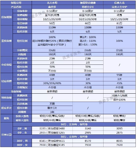 完美人生守護最大優勢:少兒特疾額外賠付;輕症保額高;便宜。