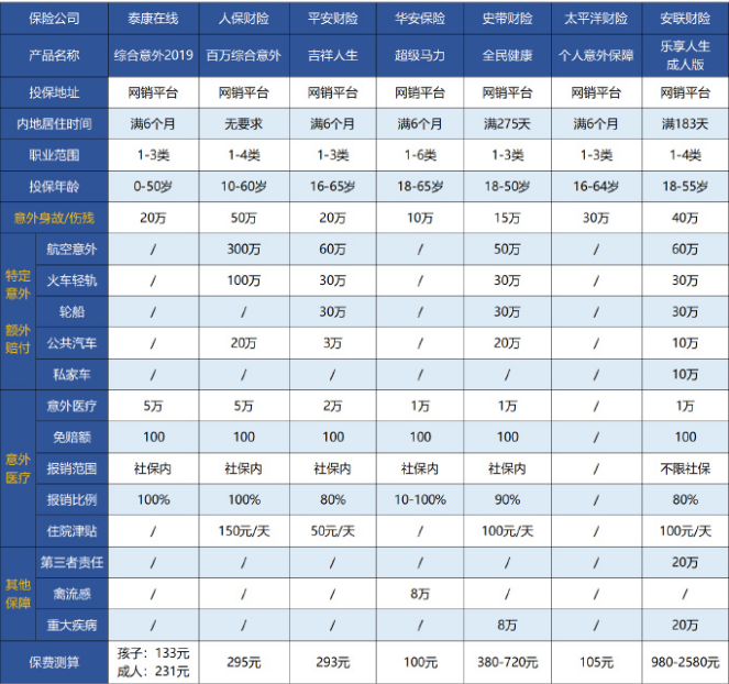市麵上很多意外險,外籍人士都不能買,這裏也為大家彙總一些可投保的產品: