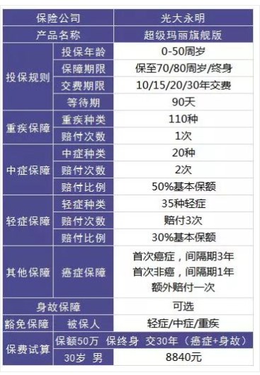 超級瑪麗旗艦版保障的重疾種類有110種,賠付1次,賠付基本保額。 在這裏,它有一個超越其他重疾險的優點:0-40周歲發生重疾,保險公司額外賠付基本保額的35%。