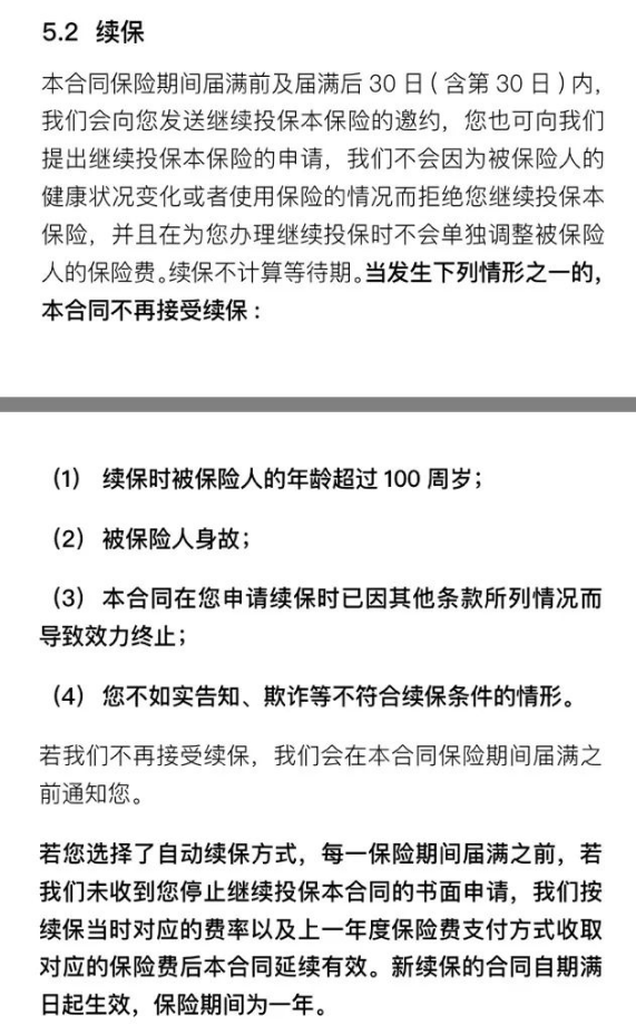 醫療保險的另一個關鍵問題是:續保。這個產品的續保條款是這樣寫的: