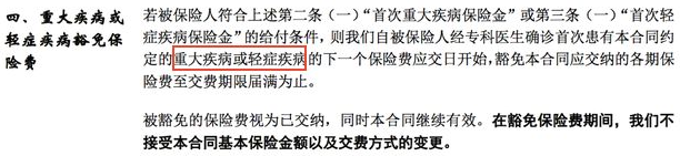 包括輕症豁免和重疾豁免,一旦涉及合同疾病,後續保險費用、合同的豁免仍然有效。