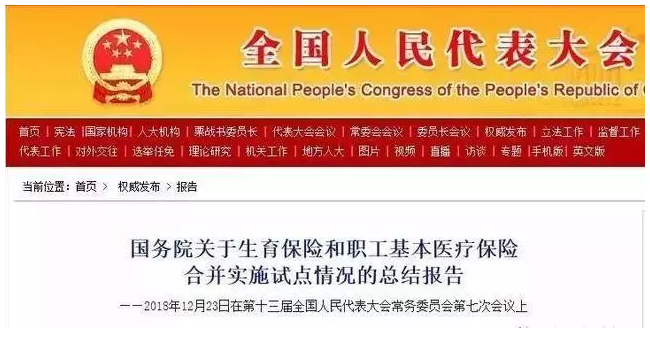 早在2018年12月23日,就引起了第13屆全國人大常委會第七次會議審議的《國務院關於生育保險和職工基本醫療保險合並實施試點工作總結的報告》就已經指出,兩個保險合並實施試點取得了積極成果,具有全麵的開放條件。