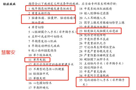 其中70種重大疾病賠付100%的保險金額,合同在支付後終止,還有另外10種其他特定疾病是賠付保險金額的兩倍,類似於慧馨安產品責任,但慧馨安是8種特點疾病,如圖所示: