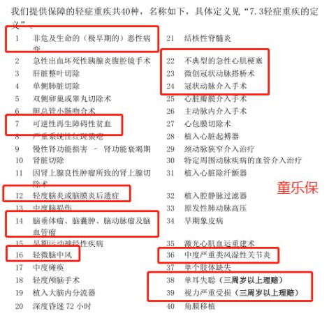 其中童樂保含有高危疾病,白血病,嚴重的手足口病,燒傷,腦損傷,而慧馨安8種,但基本上重病是重合的,整體差異並不大。