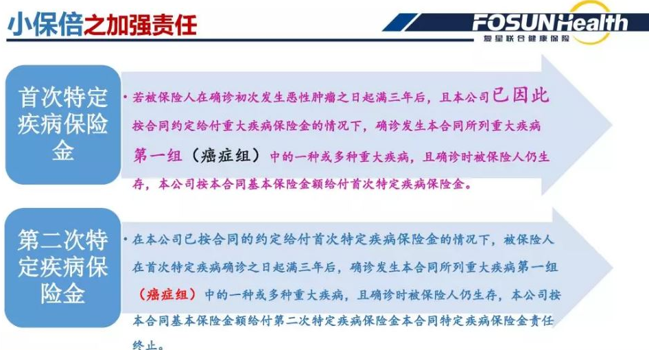2、第一或第二大病是一種惡性腫瘤,它引發特定疾病賠付,除基本第二大病賠付外,可以再賠付2次特異性疾病(間隔3年)。