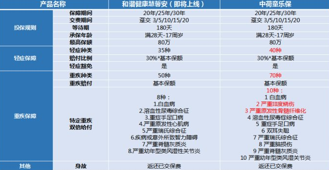 之zhi前qian有you很hen多duo的de父fu母mu來lai問wen多duo保bao魚yu這zhe個ge中zhong荷he童tong樂le保bao兒er童tong的de重zhong大da疾ji病bing保bao險xian怎zen麼me樣yang,和he慧hui馨xin安an相xiang比bi,兩liang個ge產chan品pin之zhi間jian有you什shen麼me區qu別bie,那na個ge好hao那na個ge壞huai,多duo保bao魚yu今jin天tian就jiu來lai分fen析xi一yi下xia。