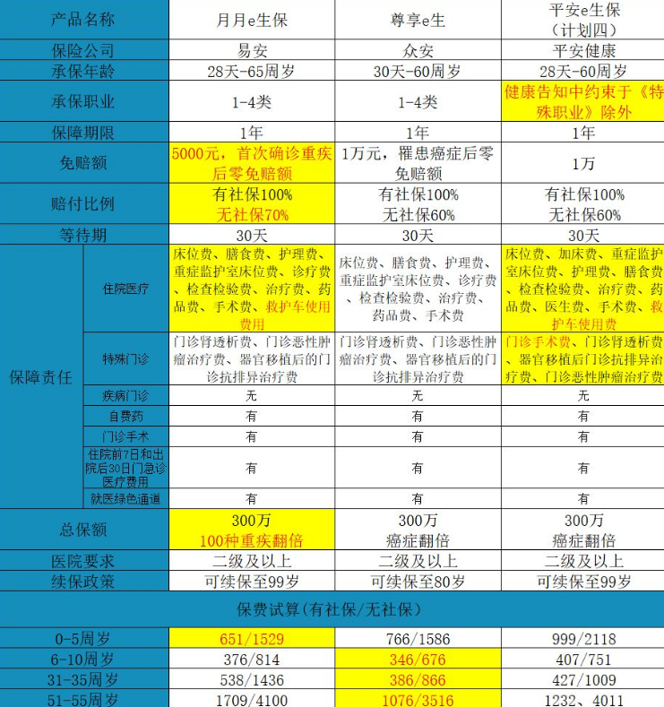 這三種的總保險金額是杠杆,基本保險金額為300萬,但最大保險金額不同。月月e保是100種主要疾病,保險金額增加一倍並支付;尊享e生和平安e生保隻是愛張翻倍,而保障之間的差異仍然完全不同。