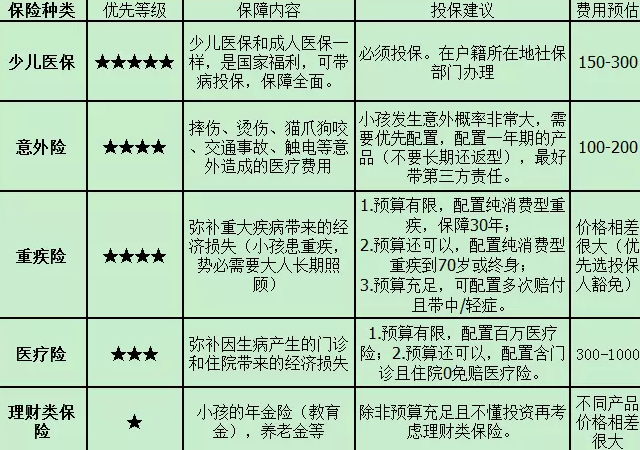 二:在家庭成員中,大人都是支柱,保費必須先滿足大人,對於孩子,意外險、重大疾病保險、醫療保險是必須的。