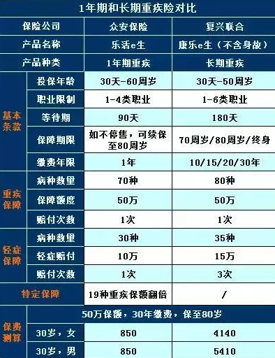 為了讓每個人都能更容易地做出決定,我們選擇了兩個典型的產品比較來說明一年期和長期重大疾病保險的優缺點。
