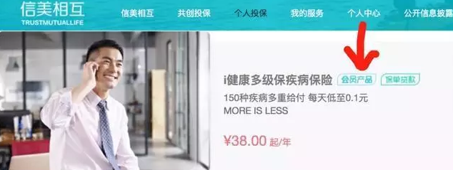 信美產品的官方網站成員將標有特殊標簽,而其他一年醫療保險和意外險都是非會員產品。