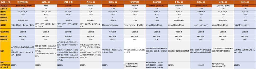 保險年齡沒有特別限製:計劃1至計劃4(3個月至65歲);計劃5和計劃6(18至65年)。承保職業:保險計劃1至5(1-3類),計劃6(1-2類和年收入大於或等於100,000)。應該注意的是,這個產品保障隻能作為“家庭主婦、學齡前兒童、退休人員”的職業投保。