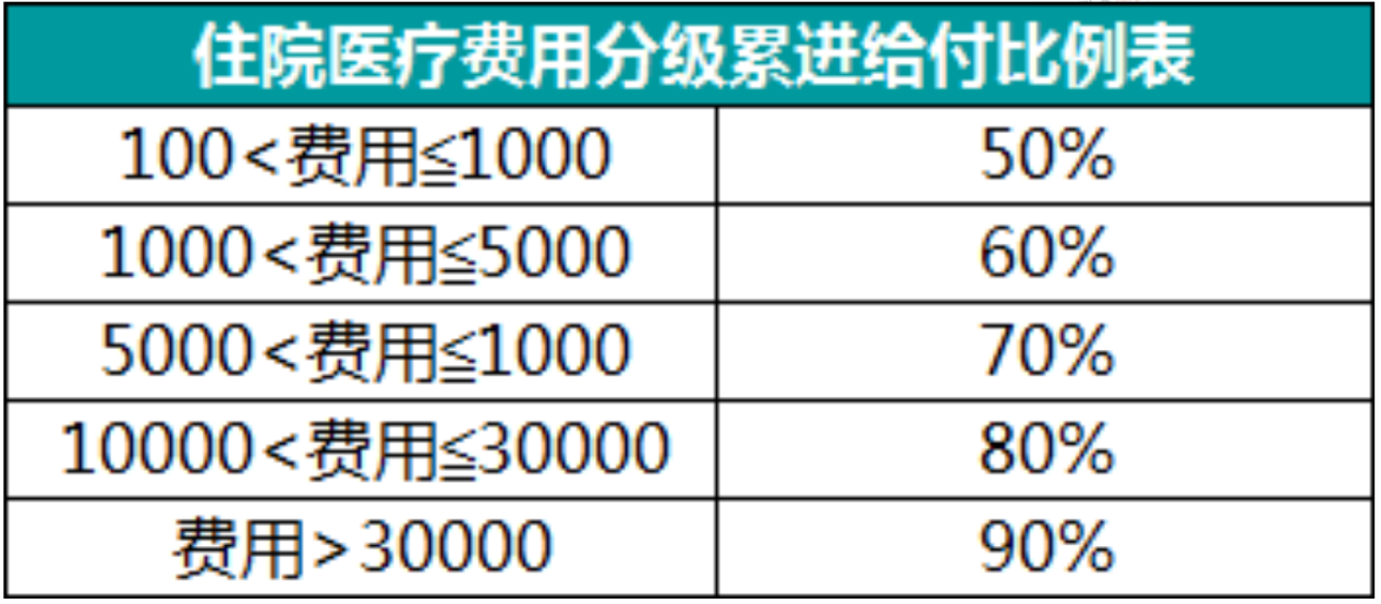 如果沒有社保報銷,或社保報銷不超過70%,那麼它將采取累進報銷的形式。不到1000元隻能報銷50%,花的越多,報銷率越高,超過30,000的費用可以報銷90%。具體的報銷方法如下: