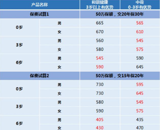 從上圖不難看出,中荷童樂保對於0-3歲更有利,3歲後慧馨安相對便宜,不過總體來看,這兩款費率都還不錯,都是值得關注的兒童重疾險產品。