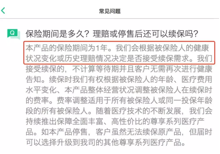 也就是說,隨著父母年齡的增長,身體出現了一個小問題。當最需要保險時,尊享e生爸媽版可能不續保。簡而言之,醫療費用的報銷可能隻持續一年。僅此一點,我不建議使用此尊享e生爸媽版。