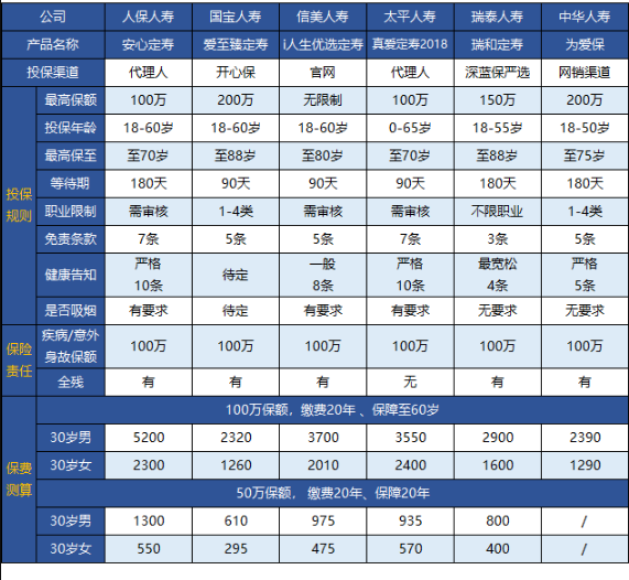 3.如果追求最具性價比:你可以考慮【中華聯合為愛保】和【國寶愛至臻】,價(jia)格(ge)優(you)勢(shi)更(geng)加(jia)明(ming)顯(xian)。中(zhong)華(hua)為(wei)愛(ai)保(bao),無(wu)論(lun)你(ni)是(shi)否(fou)抽(chou)煙(yan),你(ni)都(dou)可(ke)以(yi)正(zheng)常(chang)投(tou)保(bao),但(dan)健(jian)康(kang)告(gao)知(zhi)會(hui)更(geng)嚴(yan)格(ge),如(ru)果(guo)你(ni)身(shen)體(ti)狀(zhuang)況(kuang)良(liang)好(hao),你(ni)就(jiu)可(ke)以(yi)理(li)解(jie)。國(guo)寶(bao)愛(ai)至(zhi)臻(zhen),費(fei)率(lv)也(ye)是(shi)一(yi)大(da)優(you)勢(shi),但(dan)尚(shang)未(wei)正(zheng)式(shi)上(shang)市(shi),健(jian)康(kang)告(gao)知(zhi)情(qing)況(kuang)無(wu)法(fa)驗(yan)證(zheng),有(you)興(xing)趣(qu)的(de)朋(peng)友(you)可(ke)以(yi)關(guan)注(zhu)一(yi)下(xia)。