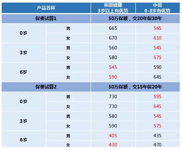 3.在費率上,中荷童樂保對於0-3歲更有利,3歲後慧馨安相對便宜,它是值得關注的產品。