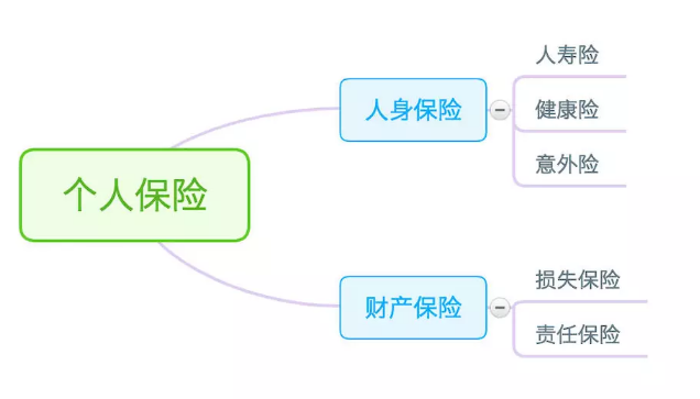 根據保險標的的不同,個人保險就有兩類——人身保險和財產保險。人身保險主要分為人壽險、健康保險和意外險;財產保險分為損失保險和責任保險。對個人而言人身保險是最重要的。