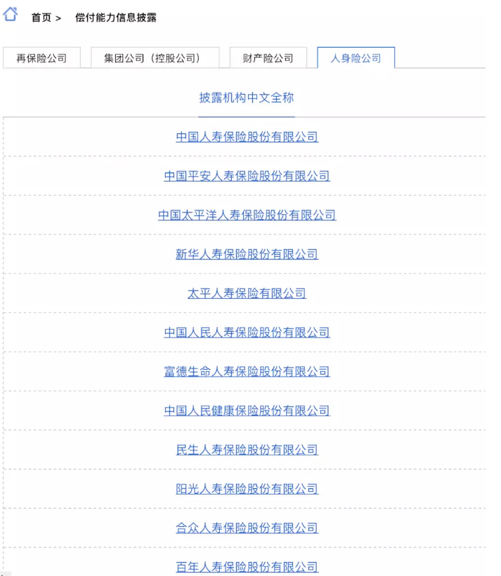 這是一個公開信息披露,不難發現,登陸中國保險行業協會官方網站(點擊文字末尾閱讀原文,或者後台留言【披露】都可跳轉)。在【信息披露】裏找到【償付能力信息披露】: