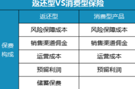 這很清楚,例如,同樣的10000元,我購買純消費保險,其保額當然是高,但如果我們購買這種類型的返還保險,它有很多錢是進入到儲蓄保費裏。