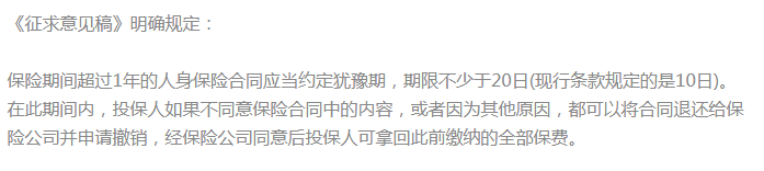 為了保護投保人的權益,國務院在今年10月發布了《關於修改〈中華人民共和國保險法〉的決定》(下稱《征求意見稿》)並公開征求民意,涉及猶豫期。