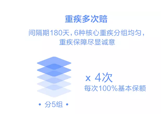 與其他多次賠付重大疾病保險一樣,嚴重疾病也被分組,108種嚴重疾病分為5組,可以補償4次。