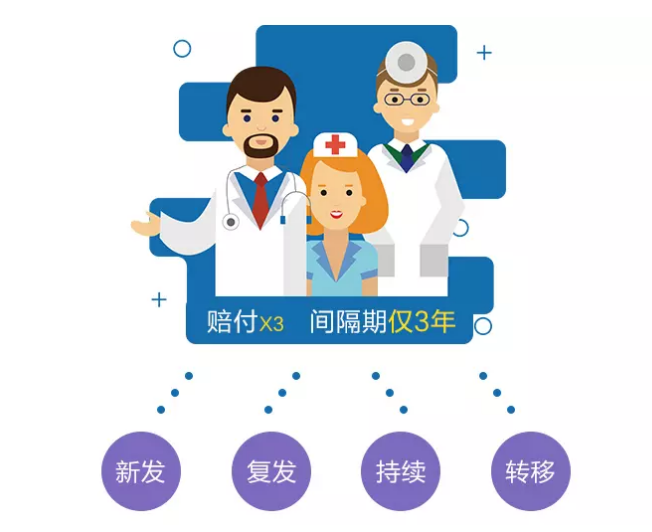 無論癌症是否持續存在、複發、新增或轉移,隻要兩個癌症間隔達到3年,就可以再次獲得100%保額。