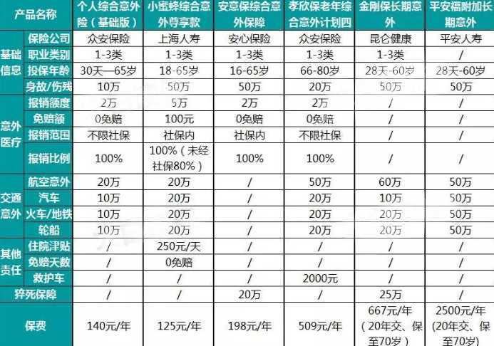 從上表可以看出,普通1年的意外險非常便宜,比如蜜蜂,50萬保額,隻要125元/年,連老人如孝欣保,隻需509元/年。
