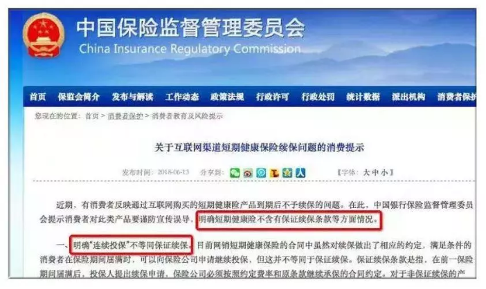 換句話說,無論產品是否虧本,保險公司必須是無條件的續保,並且在與合達成一致的續保期間不能更改保費或更改保障範圍。