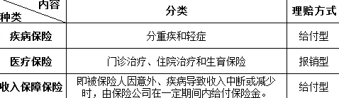 3、津貼類型:用於賠付被保險人因事故造成無法正常工作的收入損失。