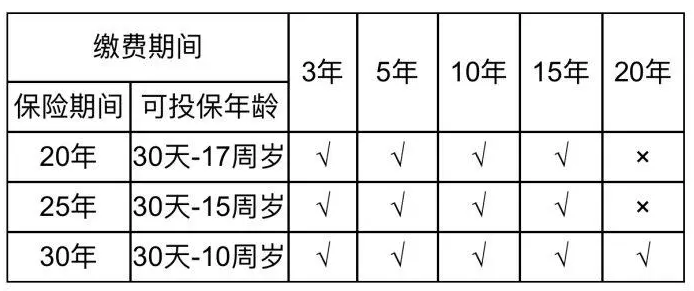 2、保障期間:20/25/30歲