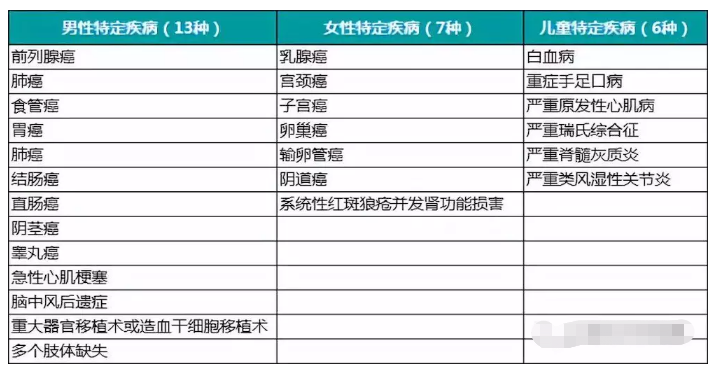 4.新增的特定疾病保障:增加13種男性疾病、7女性疾病、6種兒童疾病,如果是特定疾病發生,額外賠付30%的保額,即假設500,000保額,如果體重發生疾病是特定的,賠付是650,000。