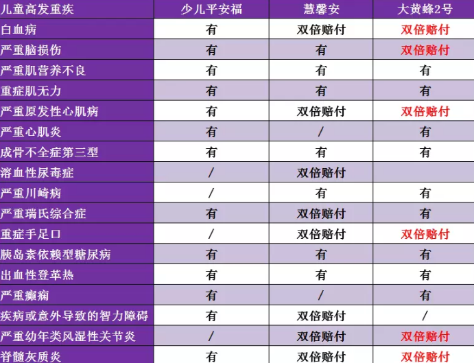 少兒特定重疾一共12種,其中6種與重大疾病重疊。這意味著這6種疾病可以加倍賠付。