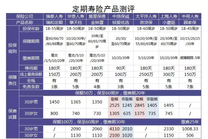 多保魚整合了現在市麵上最具有代表性的幾款定期壽險,做了一個橫向對比: