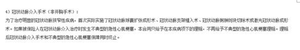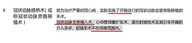 條款中隻保障冠狀動脈搭橋手術,並且注明:冠狀動脈支架手術不在保障範圍。