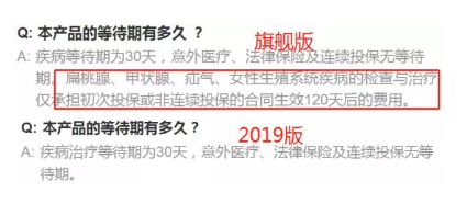在常見問答中,升級後的2019版不再對扁桃體、甲狀腺、疝氣、女性生殖係統疾病的檢查與治療設定理賠時間限製。