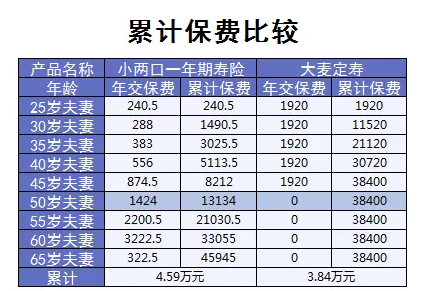 而小兩口如果每年續保,一直到65歲的話,總保費為4.59萬,比大麥貴了0.75萬。