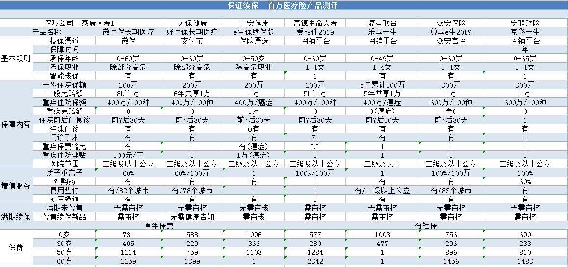目前,市麵上保證續保的醫療險並不多見,小編整理了幾款產品: