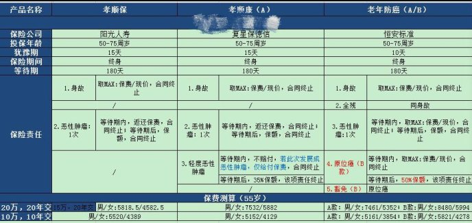 目前市麵上針對老人的保險產品不多,畢竟年齡越大,杠杠力度越小,適合他們健康的產品不多,畢竟老人投保、核he保bao的de過guo程cheng較jiao複fu雜za,相xiang比bi年nian輕qing人ren會hui較jiao難nan通tong過guo核he保bao,而er且qie老lao人ren的de不bu確que定ding因yin素su有you很hen多duo,會hui不bu會hui出chu險xian,什shen麼me時shi候hou出chu險xian都dou是shi不bu好hao預yu測ce的de。所suo以yi今jin天tian給gei大da家jia測ce評ping的de是shi恒heng安an標biao準zhun新xin上shang市shi的de老lao年nian防fang癌ai險xian。